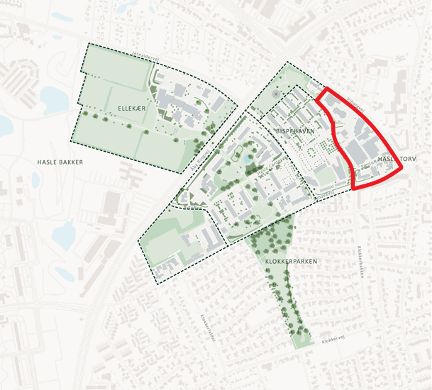 Området omkring Hasle Torv udvikles til et nyt og karakterfuldt centrum, hvor man mødes på tværs af bydelens kvarterer.